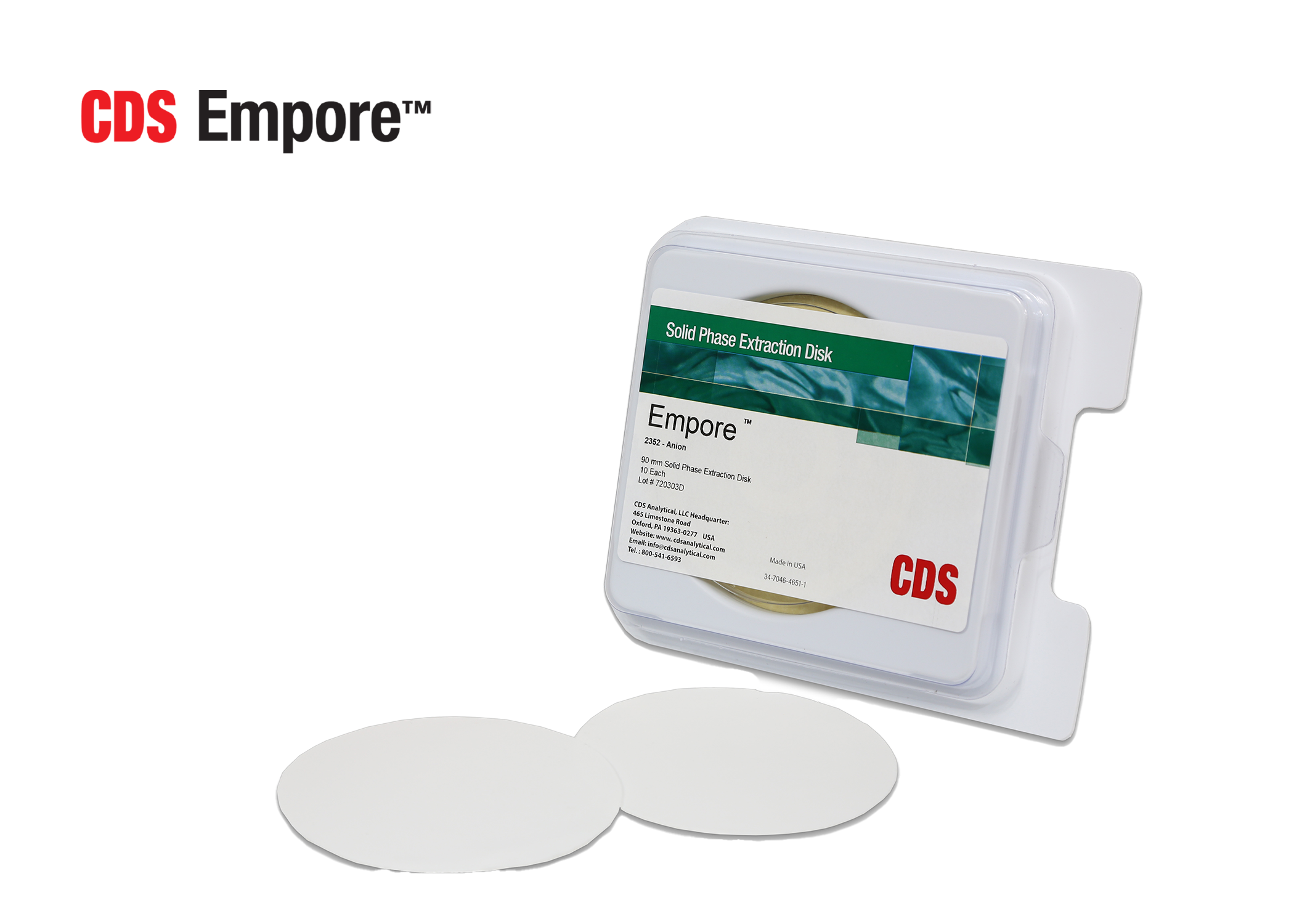 CDS Empore 2252 and 2352 Environmental Anion Disks are polymer-based strong anion exchange solid phase extraction (SPE) disks with a 12 μm particle size for extracting negatively charged ions from aqueous samples. These SPE disks are ideal for removing humic and fulvic acid interferences and are compatible with EPA Methods 548.1, 552.1, and others. With a wide pH range of 1–14, they offer strong ion-exchange performance for environmental water analysis and related applications.