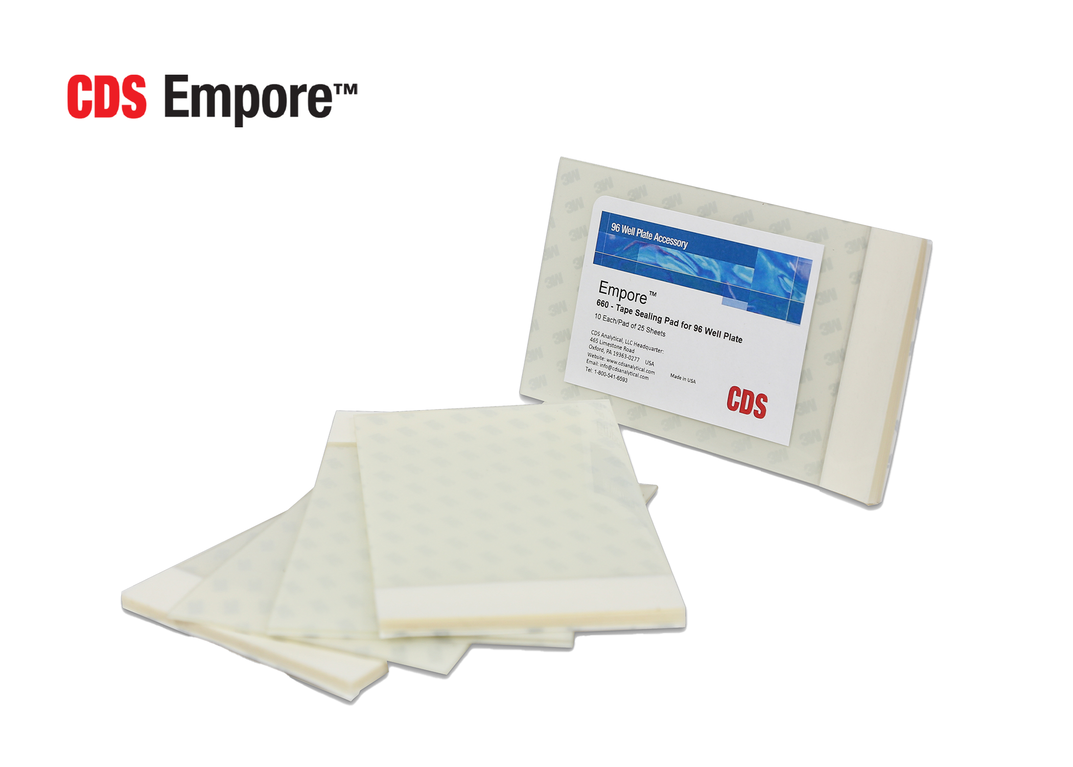 CDS Empore 660: 96-well Sealing Tape Pad, polypropylene file with a synthetic rubber adhesive. 5.5"X3.5". 25 sheets/Pad.. Good to remove visible particulates (>10um) from samples in the 96-well plate format (>98% removal), while maintaining excellent flow characteristics.